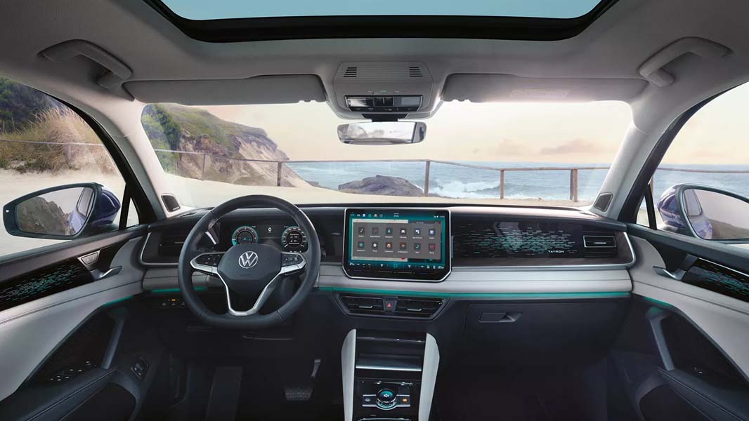 - Configurazione flessibile dei sedili: Disponibile in versioni a cinque o sette posti, il Tayron include una terza fila ripiegabile per espandere lo spazio di carico.
